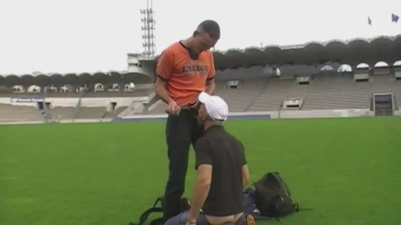 incredible exhib, a gay suck and fucked in a public football stadium !! incredible